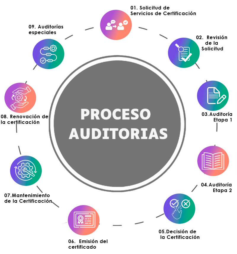 Incluye 9 etapas clave, desde la solicitud hasta la recertificación.